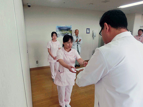| H26.10.06 | 【お知らせ】 9月21日付けで第2病棟に鴛田師長、山口看護主任を任命し辞令を交付しました。新しい体制のもと頑張っていきたいと思います。 |