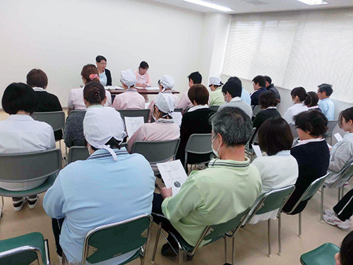 | H26.07.23 | 【お知らせ】 接遇研修会を行いました。今回はエーザイ株式会社による「医療のプロとして患者との接し方」をテーマに学びました。 医療現場における接遇の大切さを改めて学び今後のに活かしていきたいと思います。 |