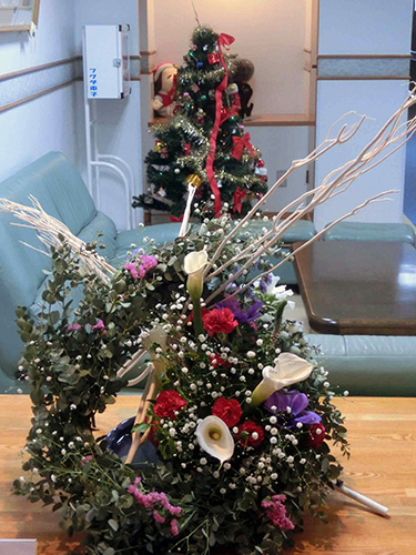 【今週の光風流】 今週の光風流です。今日はクリスマスイブで色とりどりの生け花が豪華なクリスマスを演出してくれます。クリスマスツリーとのコラボも素敵ですよ。 |