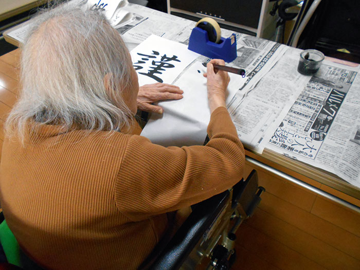レクリエーション 2019.12.16 12月15日(日)、一の谷ユニットで茶道と書道をしました。 久しぶりにされたとの事で、皆さん真剣に取り組まれ、その成果が出ました。 今年もあと半月ですが、やり残した事はございませんか?