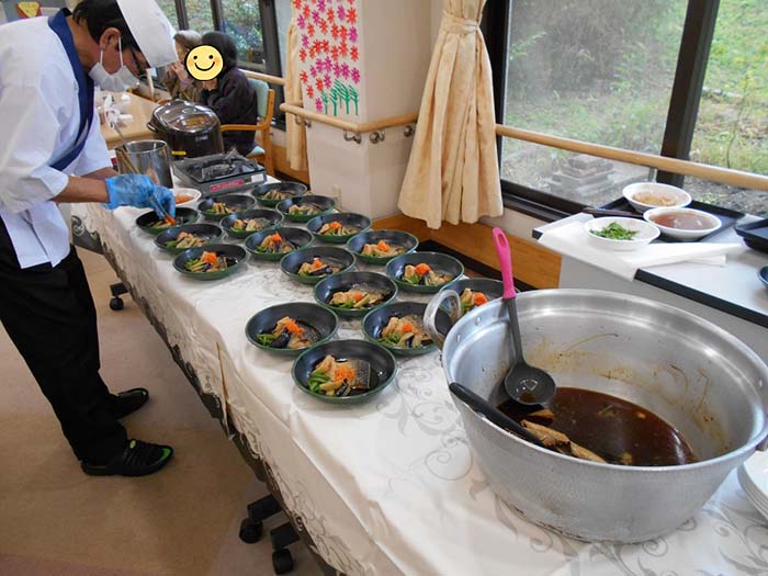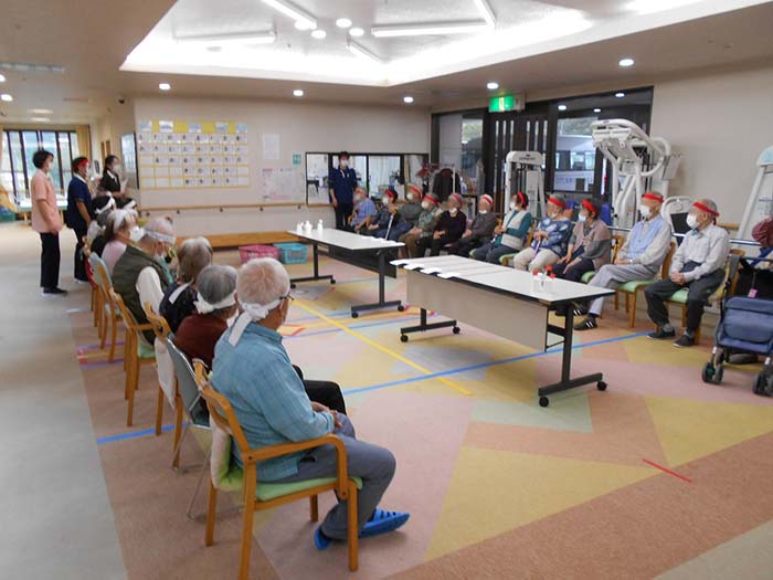 秋のイベント ~デイサービス~ 2021.10.26 急に寒くなってきて、秋を通り越してすぐに冬がきてしまいそうですね・・・ デイサービスでは10月のイベントとして、「運動会」が行われました! 紅白に分かれて、じゃんけんリレー・カーリング・玉出しなどのゲームを行いました♪ 勝負となるといつもと雰囲気も違い、力が入った様子でした! また食事レクとして、「炊き込みご飯定食」が出ました☆ お食事前からフロアには美味しそうな匂いでいっぱいでした。 目の前でキレイに盛り付けされていき、皆様とても喜ばれていました♪