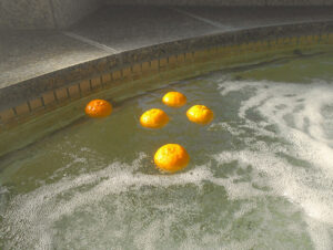 今月のお風呂の日は冬至と2日間実施しました。冬至とお風呂といえば…柚子風呂!!