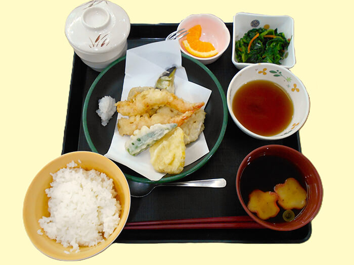 今月の食事レクは去年も人気の高かった、天ぷらの実演でした。