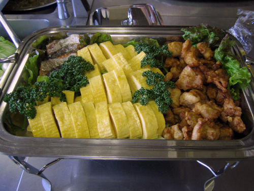 | H24.01.25 | 【お知らせ】 本日は、初めての試み、バイキングを実施いたしました。メニューは、巻き寿司・いなり寿司・鮭の塩焼き・鶏の唐揚げ・出し巻き卵・卯の花・小松菜のゴマ和え・ブロッコリーのサラダ等盛りだくさん。 いつもはおかわりされない方も、今日はたくさん召し上がられ、大変喜ばれておりました。 2月にも実施予定です。 |
