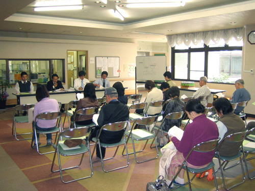 | H24.12.17 | 【お知らせ】 12/15(土) 18時から21時まで宝塚シニアコミュニティ(2F地域交流スペース)において、介護アドバイザーの青山幸広先生を講師にお招きしてスーパートランス研修を実施しました。利用者様の自立を支援するとともに、利用者様に喜んでいただけるようなサービスの提供が行えるよう努めてまいります。 |