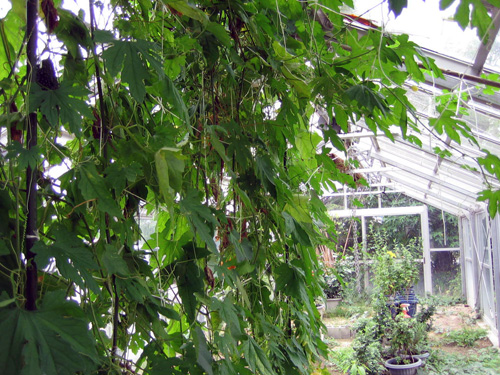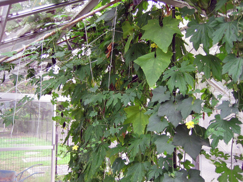 | H24.09.07 | 【お知らせ】 私達温室育ちでーす。園芸委員会で温室を整備し(立派な温室なのに、倉庫と化していたんです。)、ゴーヤ、へちま等植えました。 収穫はみんなジャンボです。温室だから?毎日、たくさんお水をあげてお世話しているから?でしょうか。とっても豊作です。ハイビスカスも2鉢ですが、きれいに咲いていますよ。 秋には菊が満開の予定です。 |