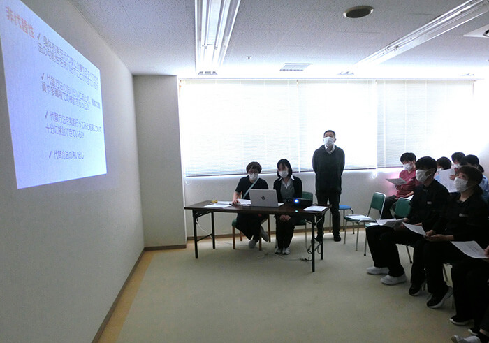 身体拘束・虐待防止研修会 2026.02.18 研修会 身体拘束・虐待防止研修会を開催しました。 身体拘束の基本的な緊急やむを得ない場合の3要件および該当しなくなった場合の拘束の解除の重要性を改めて確認しました。 昨年実施した虐待の芽チェックリストを振り返り虐待防止への意識の向上、不適切ケアを行わない組織作りについても学習しました。 今日学習したことを職員が共有し日常業務に活かせるように取り組んでいきたいと思います。